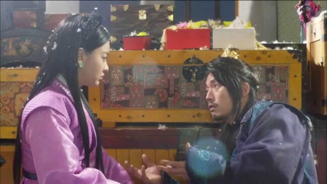早衣仙人の首長としてワン執政を討つと定宗に告げるワン・ソ。定宗を蝕む毒の成分を知った彼は部下たちに解毒剤を探させる。その一方、ワン・ソは西京遷都の監督官として、執行官のワン・ウクと手配を担当する青海商団を監視することに。その頃、ヨウォンはワン・ソの部下に早衣仙人の元にある銅鏡のかけらを持って来させる。