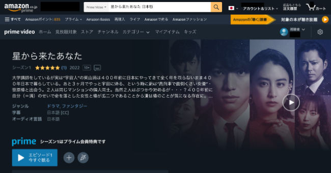 独占なのでアマゾンプライムでしか見ることができません。
