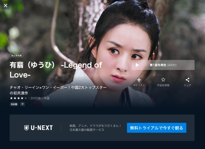 U-NEXTだとポイントを使えば実質0円です。